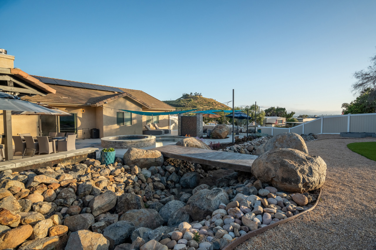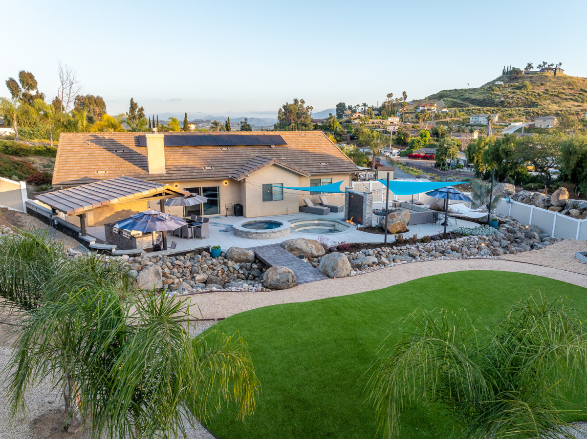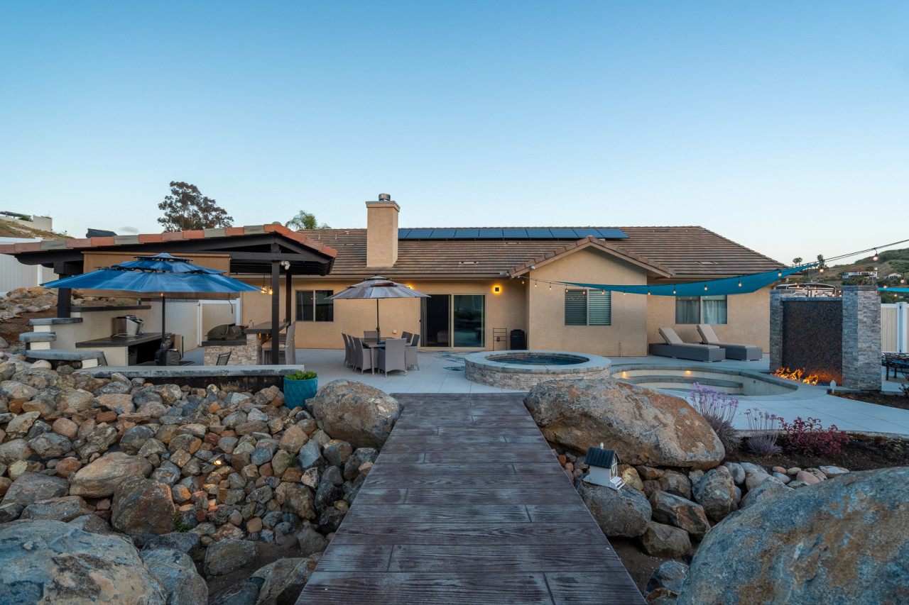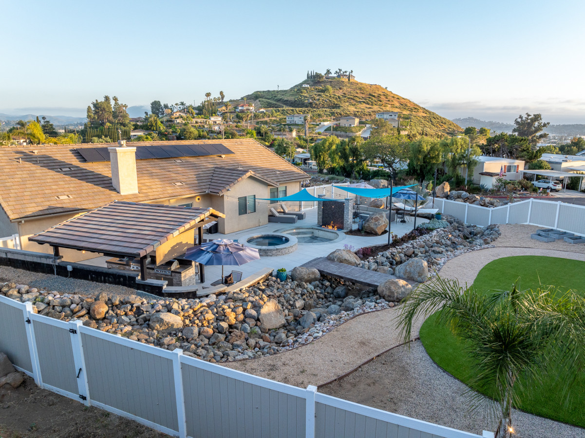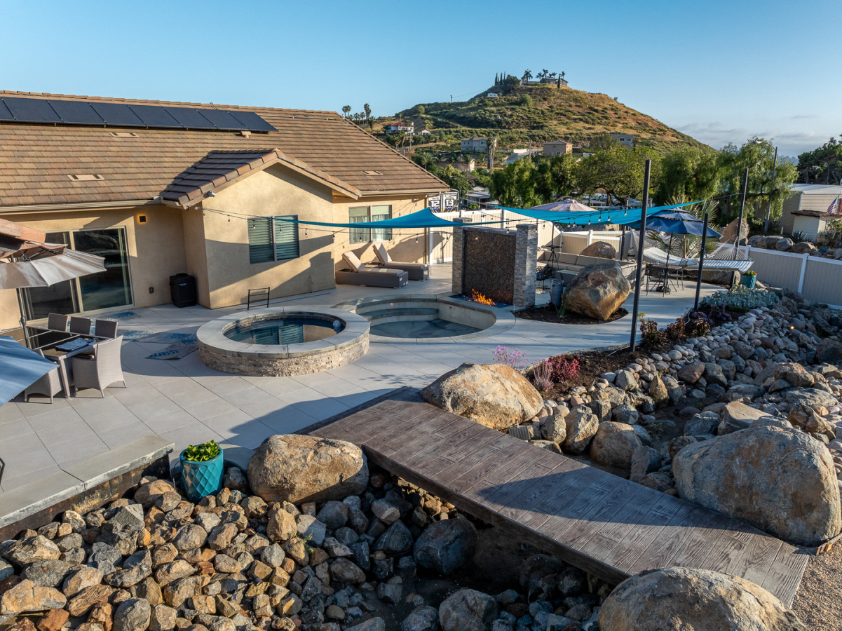/ nightExceptional home w/ spa in a quiet neighborhood (private road w/4 houses); kitchen has everything you need and more! Perfect for families with kids of various ages or multiple families. What to Expect: - Home built in 2016 - Custom backyard built in 2022 - Jacuzzi - Outdoor kitchen - 2 refrigerators - Outdoor hammocks - 2 outdoor fire pits and 1 indoor fireplace - 20 mins to the beach, the San Diego Zoo, Balboa Park, Sea World, Little Italy and downtown San Diego and all that it has to offer! Welcome to The Haven in East San Diego. We welcome you to enjoy our home featuring (at no additional cost) a custom glass tiled outdoor jacuzzi, two hammocks, movie wall, 2 fire pits, TV's in every room and outdoor TV, complete outdoor furniture, fully equipped kitchen and tons of great spaces to lounge inside and outside! Located just 20 minutes from the airport, downtown San Diego, the San Diego Zoo, La Jolla Shores (and a ton of other beaches) and more. The home is situated on a private road with only four other houses, this home has everything you need to enjoy your San Diego vacation! This home is set up for families! As you arrive, there is a large driveway with plenty of room for multiple vehicles. The house has been fully landscaped with very modern look inside and out. As you walk to the front door, an electronic keypad for entry (code provided prior to check in) into a beautifully entry landing where you can see directly into the backyard. Vinyl floors, smart home, and modern design features invite you to the main living area, or outside to the custom-built backyard where you can find some peace, quiet and relaxation. The living room is large with an open floorplan into the kitchen and dining areas, a large couch and a smart TV next to the fireplace with ALL the capabilities to stream whatever you'd like. The gas fireplace is easy to use and enjoy for the cooler evenings or morning coffee. There's also two additional gas firepits in the backyard which put off tremendous heat. The large dining area seats 8 with more seating at the kitchen counter (seats 3) and nook dining area (seats 6) near the kitchen. The kitchen is very well stocked with all the cooking utensils, measuring cups, pots/pans, Instapot, rice cooker, coffee drip and expresso system, stove, oven, spices and oils and everything else you need to cook. Paper towels, paper plates, cups, plates and everything you will need is provided, you just need to bring the food or food delivery service is available for an additional fee. Outside you will find the custom glass tiled spa, patio lights, tons of seating areas and shade for adults and children. In addition, there are loungers, pool towels, two hammocks, movie wall, fridge, freezer, sink, hibachi grill, regular grill and two fire pits! There's a large outdoor dining table, large couch, bar stools and everything you need for outdoor dining. We also provide propane for the BBQ, and outdoor fire pits. Guest bathroom has shower and dual sinks. Shower towels, washcloths, and hand towels are always provided as is shampoo, conditioner and body wash in all our bathrooms. The first bedroom has a queen-sized bed with freshly cleaned sheets. It's a super cute room with a dresser, walk in closet, and a nice wall art. Super-fast Cox Wi-Fi and MESH system available in every room. The master bedroom is HUGE. A king size bed with ultra comfortable sheets and comforter. There is a seating area, air purifier, three dressers, tons of natural light (and window coverings of course). There's even a wall mounted ironing board and iron setup for your use. The massive master bathroom has a huge walk-in closet, dual sinks, a jacuzzi tub, and a large glass shower. All well-appointed and designed for your enjoyment and peace of mind while you travel! There are two additional bedrooms, laundry room, and closet full of board games. The first bedroom has a queen bed, wall mounted smart TV, desk for getting work done or hooking up a gaming device, decorative pictures, dresser and walk in closet. The bedroom is a queen size bed that pulls out from the couch and two desks for getting some work done while traveling. There is a large, curved monitor that can easily connect to a laptop if you want! We also have a printer that guests are welcome to use if needed. Another half bathroom with a toilet and sink is nearby all three rooms which are located on one side of the house and the master is located on the opposite end of the house. The laundry room is near the kitchen and everything you need to do laundry is provided for you including detergent, dryer sheets (etc.). Our family would love to host you. We love the traveling experience, and we want you to LOVE your time in San Diego! You will have full access to the entire home, living room, full kitchen, as well as a large outdoor area, outdoor kitchen and jacuzzi. The backyard is equipped with synthetic grass, lounge chairs, a dining table, couch, hibachi grill, regular grill, freezer, fridge as well as other patio furniture. Outdoor movie wall is available but must bring your own projector. You will have direct access to the owner either through the AirBNB inbox or personal cell phone. Responding to guest requests during their stay is my number one priority. **For your security and ours, there are three external security cameras. One at the front door, one in the driveway, and one in the backyard.** Parties not allowed anywhere on the property. Smoking tobacco products ONLY outside, ashtray is provided.