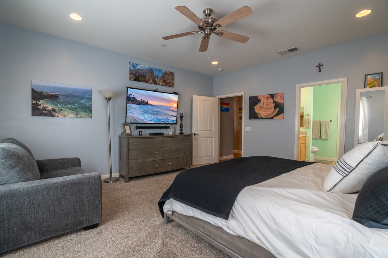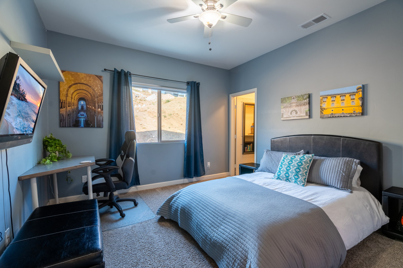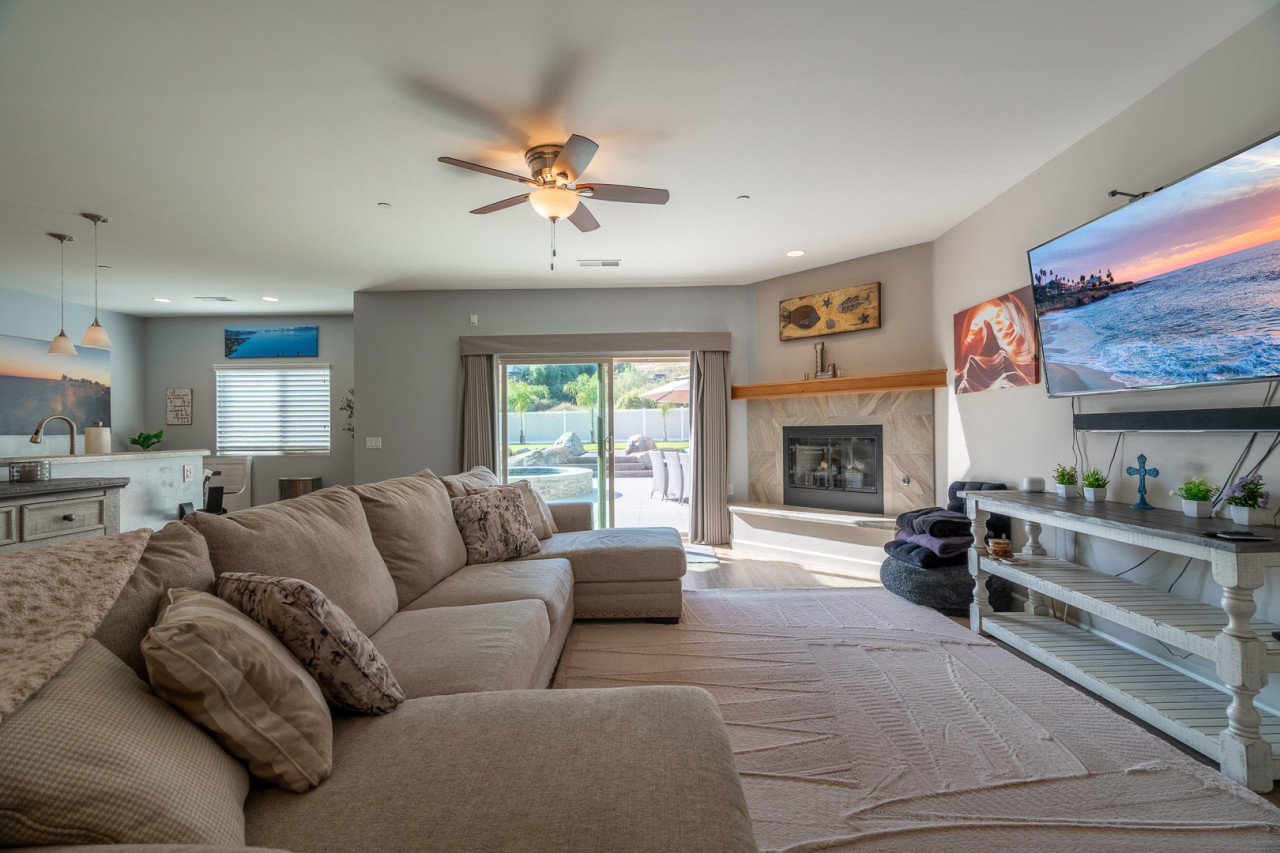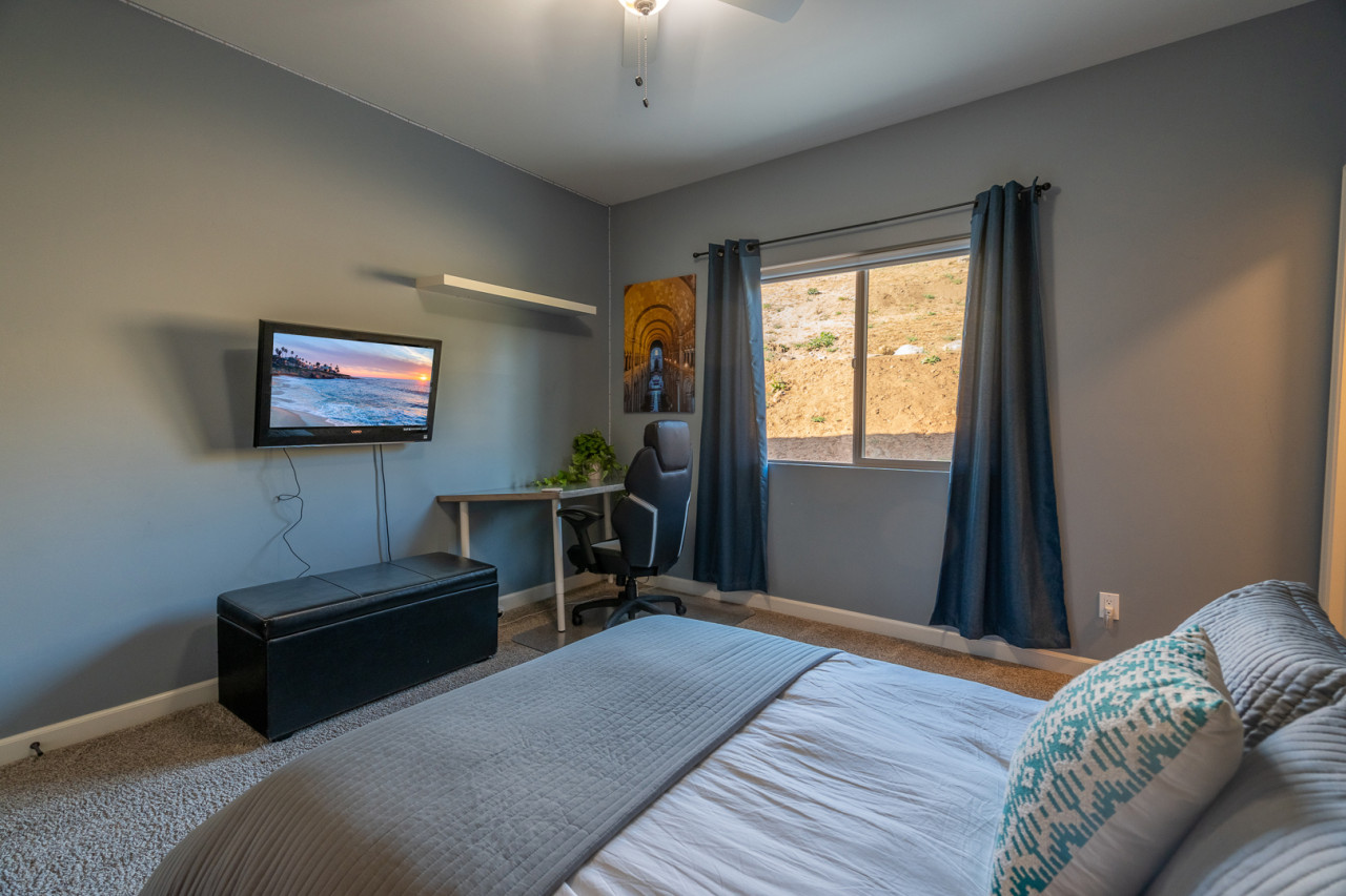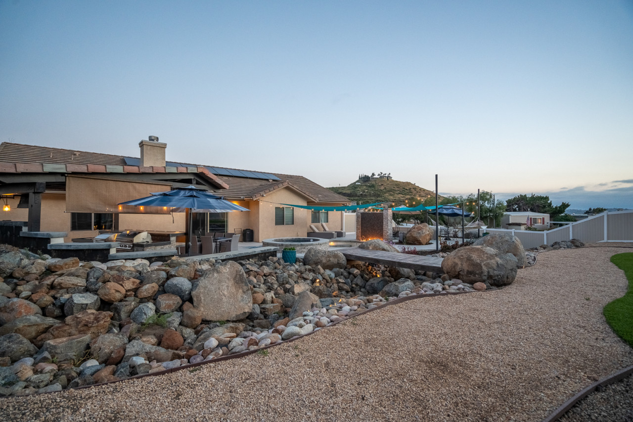 / nightExceptional home w/ spa in a quiet neighborhood (private road w/4 houses); kitchen has everything you need and more! Perfect for families with kids of various ages or multiple families. What to Expect: - Home built in 2016 - Custom backyard built in 2022 - Jacuzzi - Outdoor kitchen - 2 refrigerators - Outdoor hammocks - 2 outdoor fire pits and 1 indoor fireplace - 20 mins to the beach, the San Diego Zoo, Balboa Park, Sea World, Little Italy and downtown San Diego and all that it has to offer! Welcome to The Haven in East San Diego. We welcome you to enjoy our home featuring (at no additional cost) a custom glass tiled outdoor jacuzzi, two hammocks, movie wall, 2 fire pits, TV's in every room and outdoor TV, complete outdoor furniture, fully equipped kitchen and tons of great spaces to lounge inside and outside! Located just 20 minutes from the airport, downtown San Diego, the San Diego Zoo, La Jolla Shores (and a ton of other beaches) and more. The home is situated on a private road with only four other houses, this home has everything you need to enjoy your San Diego vacation! This home is set up for families! As you arrive, there is a large driveway with plenty of room for multiple vehicles. The house has been fully landscaped with very modern look inside and out. As you walk to the front door, an electronic keypad for entry (code provided prior to check in) into a beautifully entry landing where you can see directly into the backyard. Vinyl floors, smart home, and modern design features invite you to the main living area, or outside to the custom-built backyard where you can find some peace, quiet and relaxation. The living room is large with an open floorplan into the kitchen and dining areas, a large couch and a smart TV next to the fireplace with ALL the capabilities to stream whatever you'd like. The gas fireplace is easy to use and enjoy for the cooler evenings or morning coffee. There's also two additional gas firepits in the backyard which put off tremendous heat. The large dining area seats 8 with more seating at the kitchen counter (seats 3) and nook dining area (seats 6) near the kitchen. The kitchen is very well stocked with all the cooking utensils, measuring cups, pots/pans, Instapot, rice cooker, coffee drip and expresso system, stove, oven, spices and oils and everything else you need to cook. Paper towels, paper plates, cups, plates and everything you will need is provided, you just need to bring the food or food delivery service is available for an additional fee. Outside you will find the custom glass tiled spa, patio lights, tons of seating areas and shade for adults and children. In addition, there are loungers, pool towels, two hammocks, movie wall, fridge, freezer, sink, hibachi grill, regular grill and two fire pits! There's a large outdoor dining table, large couch, bar stools and everything you need for outdoor dining. We also provide propane for the BBQ, and outdoor fire pits. Guest bathroom has shower and dual sinks. Shower towels, washcloths, and hand towels are always provided as is shampoo, conditioner and body wash in all our bathrooms. The first bedroom has a queen-sized bed with freshly cleaned sheets. It's a super cute room with a dresser, walk in closet, and a nice wall art. Super-fast Cox Wi-Fi and MESH system available in every room. The master bedroom is HUGE. A king size bed with ultra comfortable sheets and comforter. There is a seating area, air purifier, three dressers, tons of natural light (and window coverings of course). There's even a wall mounted ironing board and iron setup for your use. The massive master bathroom has a huge walk-in closet, dual sinks, a jacuzzi tub, and a large glass shower. All well-appointed and designed for your enjoyment and peace of mind while you travel! There are two additional bedrooms, laundry room, and closet full of board games. The first bedroom has a queen bed, wall mounted smart TV, desk for getting work done or hooking up a gaming device, decorative pictures, dresser and walk in closet. The bedroom is a queen size bed that pulls out from the couch and two desks for getting some work done while traveling. There is a large, curved monitor that can easily connect to a laptop if you want! We also have a printer that guests are welcome to use if needed. Another half bathroom with a toilet and sink is nearby all three rooms which are located on one side of the house and the master is located on the opposite end of the house. The laundry room is near the kitchen and everything you need to do laundry is provided for you including detergent, dryer sheets (etc.). Our family would love to host you. We love the traveling experience, and we want you to LOVE your time in San Diego! You will have full access to the entire home, living room, full kitchen, as well as a large outdoor area, outdoor kitchen and jacuzzi. The backyard is equipped with synthetic grass, lounge chairs, a dining table, couch, hibachi grill, regular grill, freezer, fridge as well as other patio furniture. Outdoor movie wall is available but must bring your own projector. You will have direct access to the owner either through the AirBNB inbox or personal cell phone. Responding to guest requests during their stay is my number one priority. **For your security and ours, there are three external security cameras. One at the front door, one in the driveway, and one in the backyard.** Parties not allowed anywhere on the property. Smoking tobacco products ONLY outside, ashtray is provided.